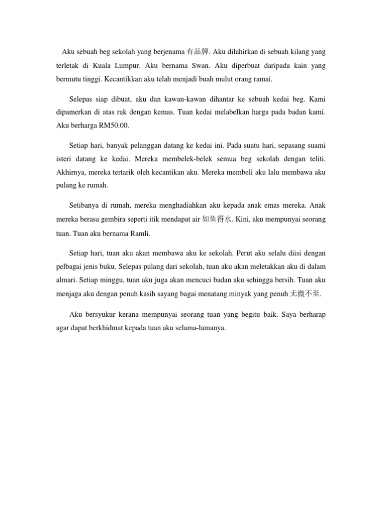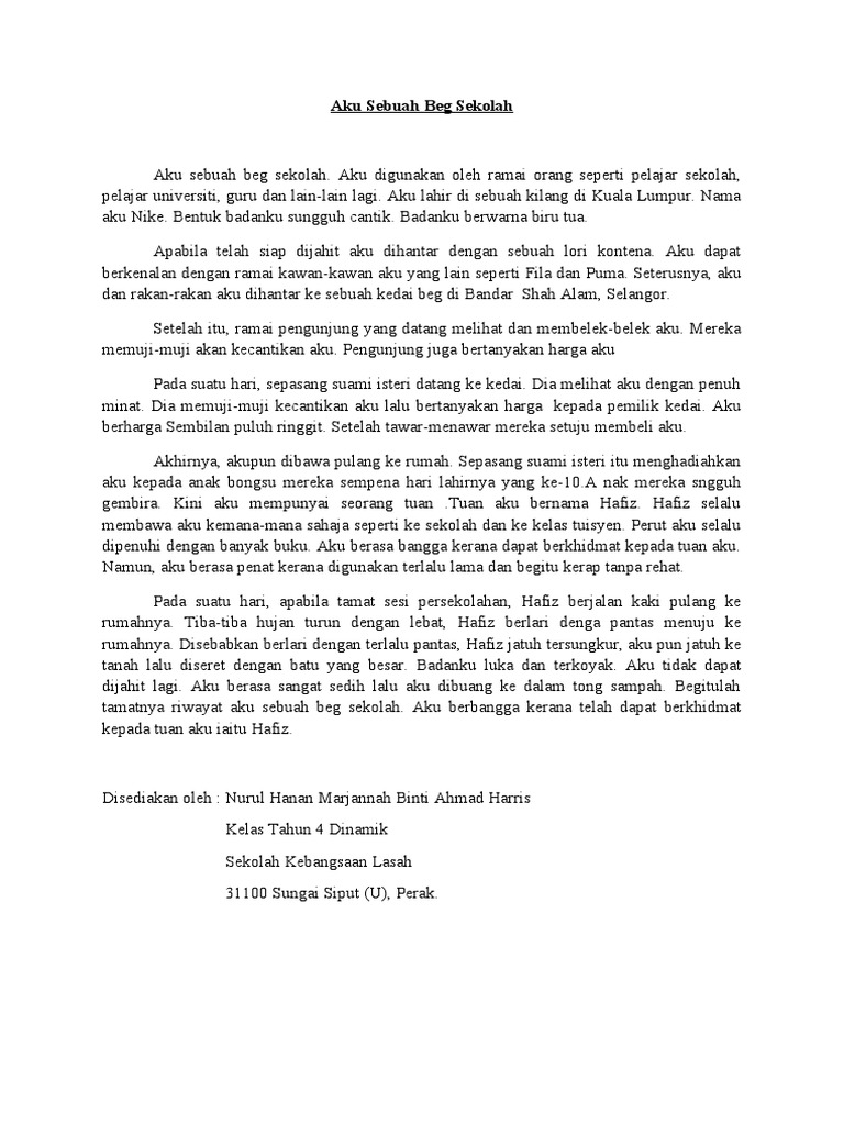 Ejercicio De Karangan Pendek Aku Sebuah Beg Sekolah