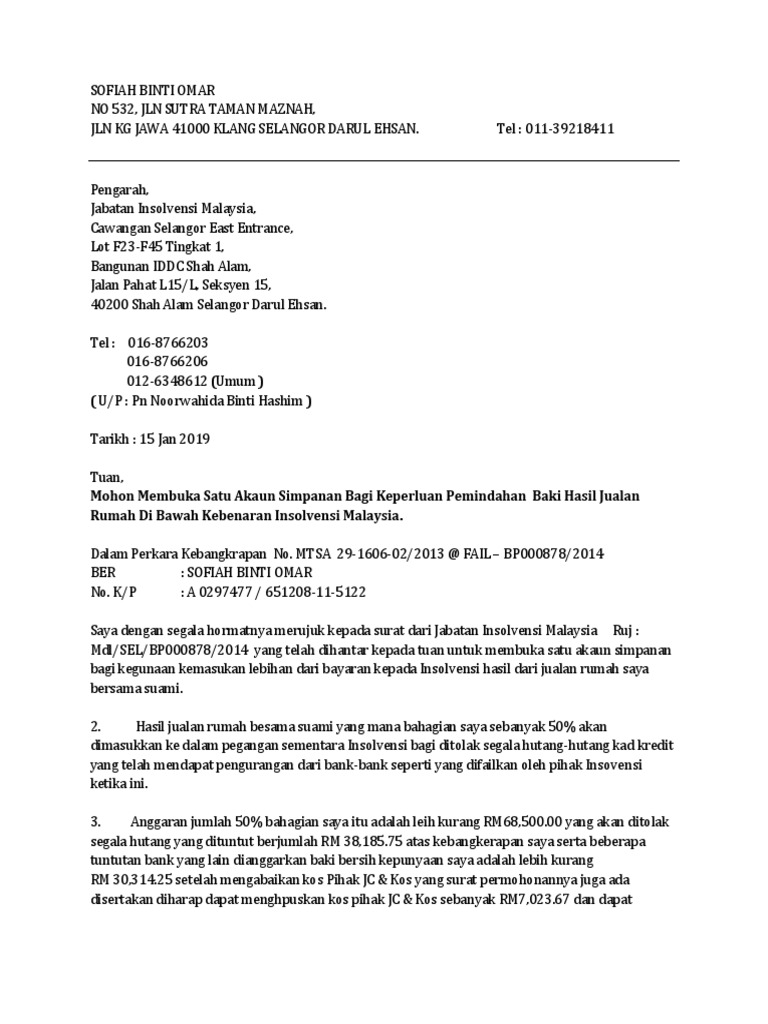 Mohon Buka Akaun Simpanan Dari Insolvensi 2019 Pdf